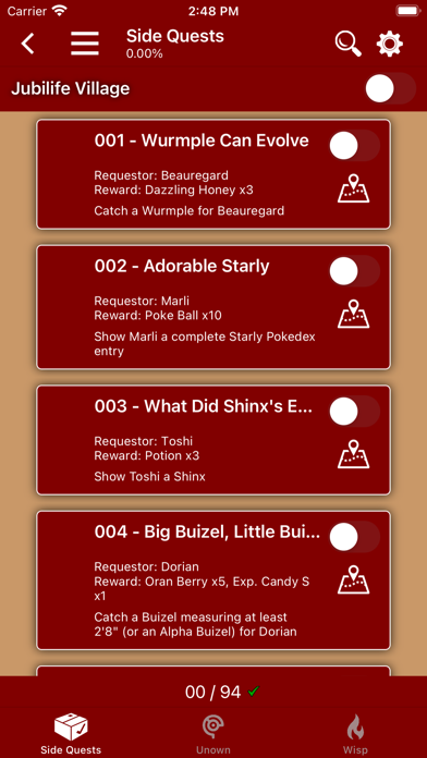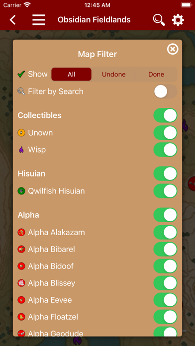 Wisps and Unown can also be tracked with a check list. You can check or uncheck your checklist entries even from the icon shown on the map.