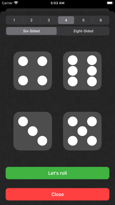 - Roll up to six 6-Sided and 8-Sided dices at once