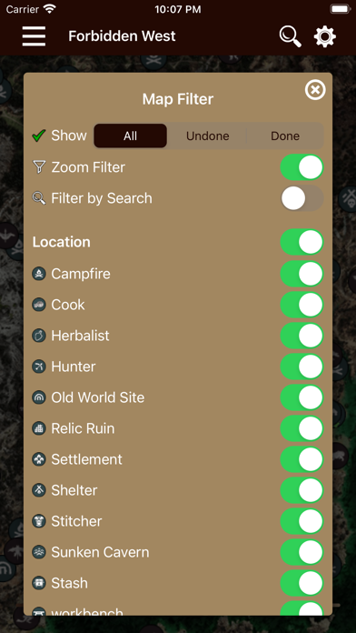 Collectible items can also be tracked with a check list. You can check or uncheck your checklist entries even from the icon shown on the map.