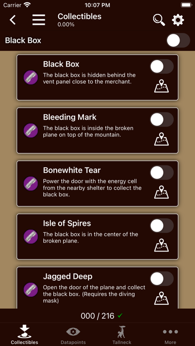 Collectible items can also be tracked with a check list. You can check or uncheck your checklist entries even from the icon shown on the map.