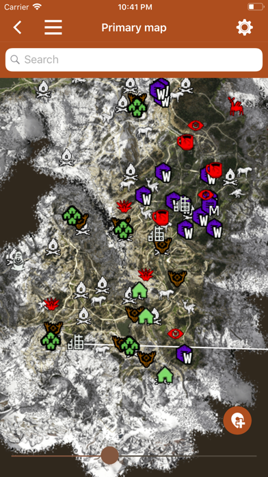 Offline map for Horizon Zero Dawn. The map features the positions of: