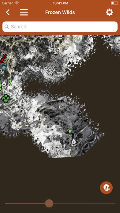 Offline map for Horizon Zero Dawn. The map features the positions of: