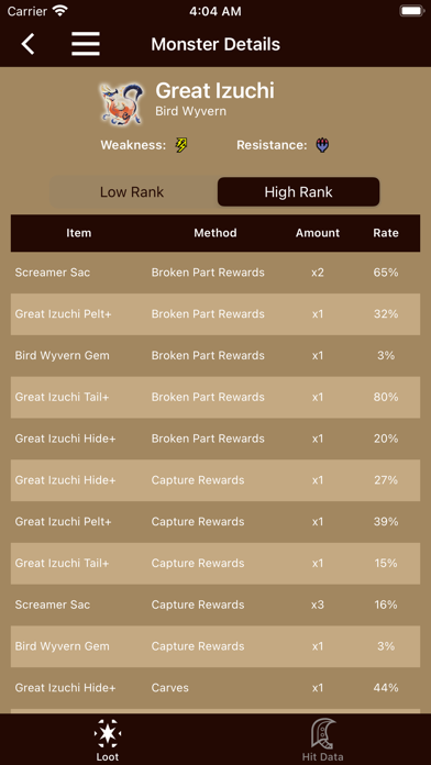 This unofficial guide app for Monster Hunter Rise assists your journey and features detailed statistics for: