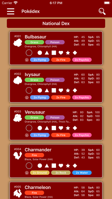- National Dex and all other dexes: Johto, Hoenn, etc.